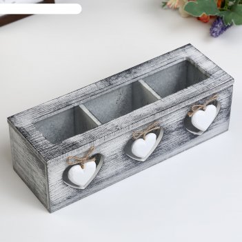 Шкатулка для драгоценностей LC Designs Co. Ltd. арт.73315 Шкатулка дерево с делениями Три сердечка серая 7,5х24х9,5 см